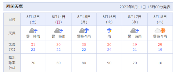 一週間後にやっと晴れるとか